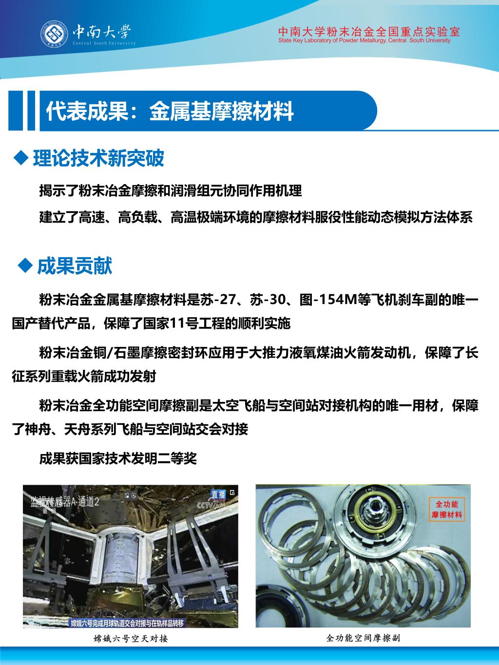 代表性成果:金属基摩擦材料