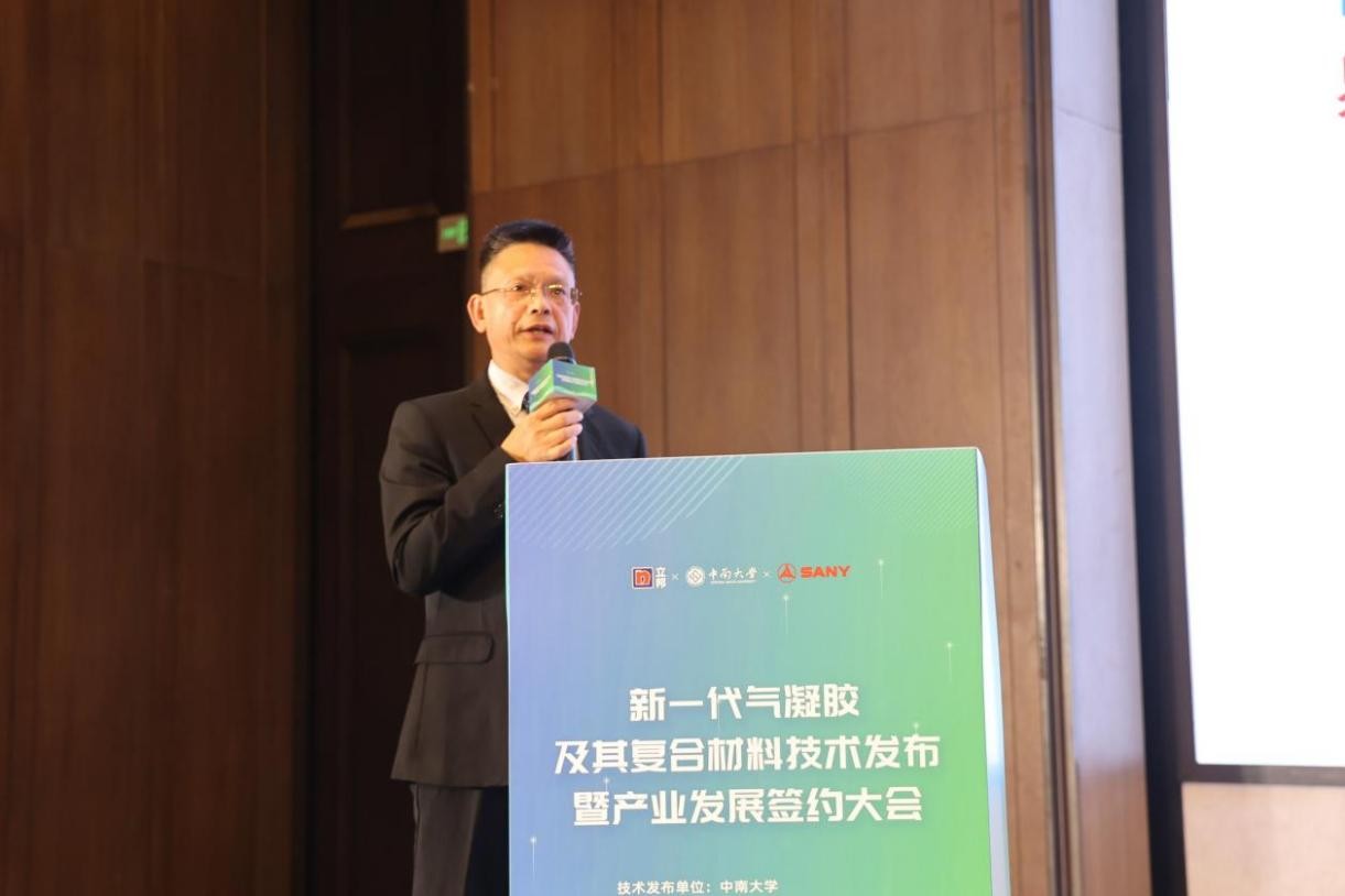 发布仪式由中南大学科学研究部部长李启厚主持,粉末冶金全国重点实验室主任周科朝作技术发布报告,报告指出新一代气凝胶及其复合材料技术,由中南大学粉末冶金全国重点实验室研究团队牵头攻关,历经十余年基础研究与技术迭代,成功突破了溶胶-凝胶结构均匀调控难、凝胶深度疏水改性难、复合材料中气凝胶双纳米结构保留率较低等瓶颈。采用常压干燥制备的透明气凝胶材料具有超低导热系数和高比表面积,由此开发的气凝胶复合材料具备优异的隔热保温、隔音降噪、节能防烫等性能,可广泛应用于绿色建筑、工业装备与管道、新能源汽车、冷链物流、航空航天等领域。目前,该技术已由中南大学博士生张丁日创办的湖南奥飞新材料有限公司完成中试,并于中试阶段与立邦中国和三一集团等大型企业开展了概念验证和设计制造迭代,实现了从实验室到市场的关键跨越。