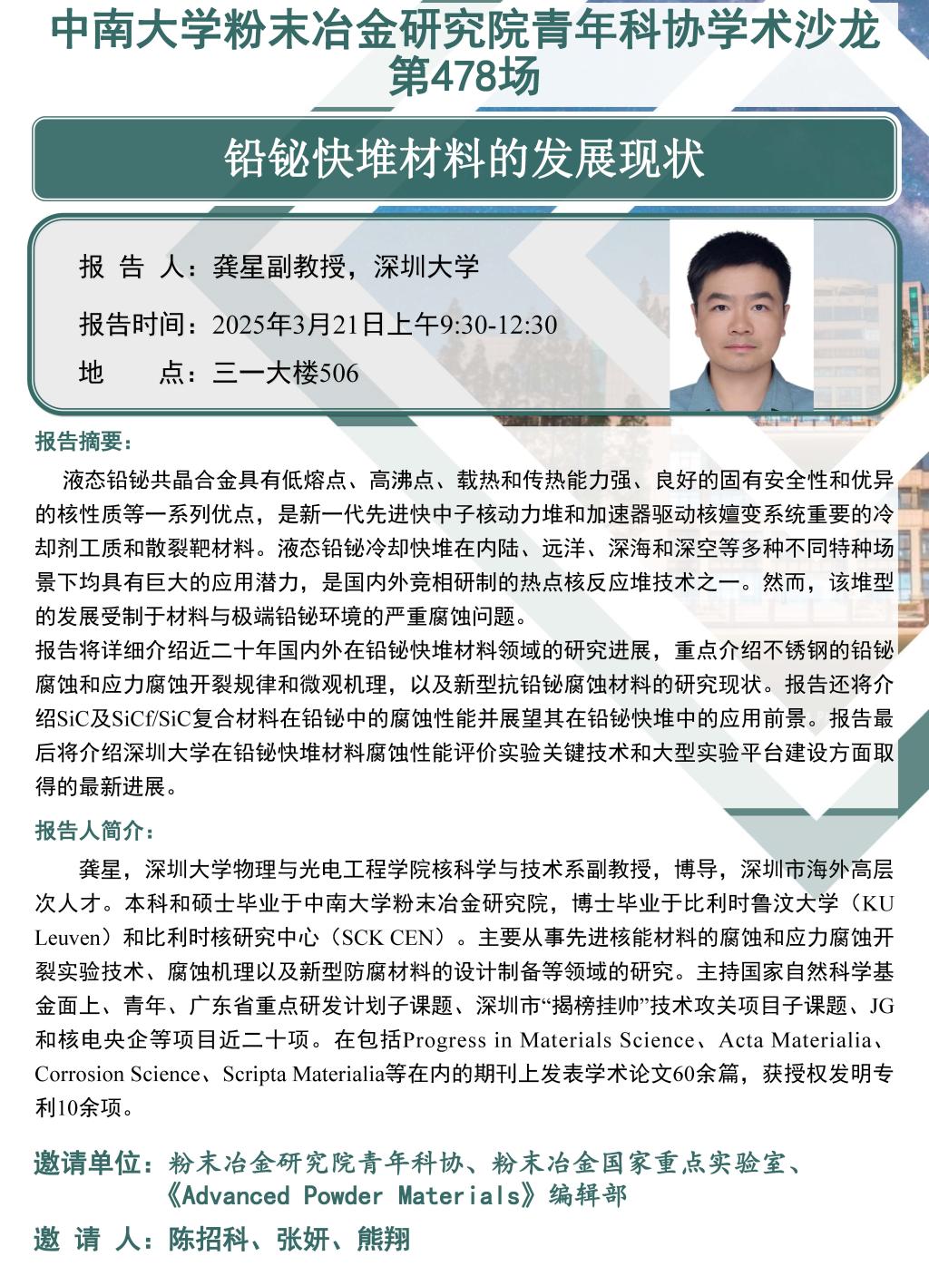 中南大学粉末冶金研究院青年科协学术沙龙 第478场