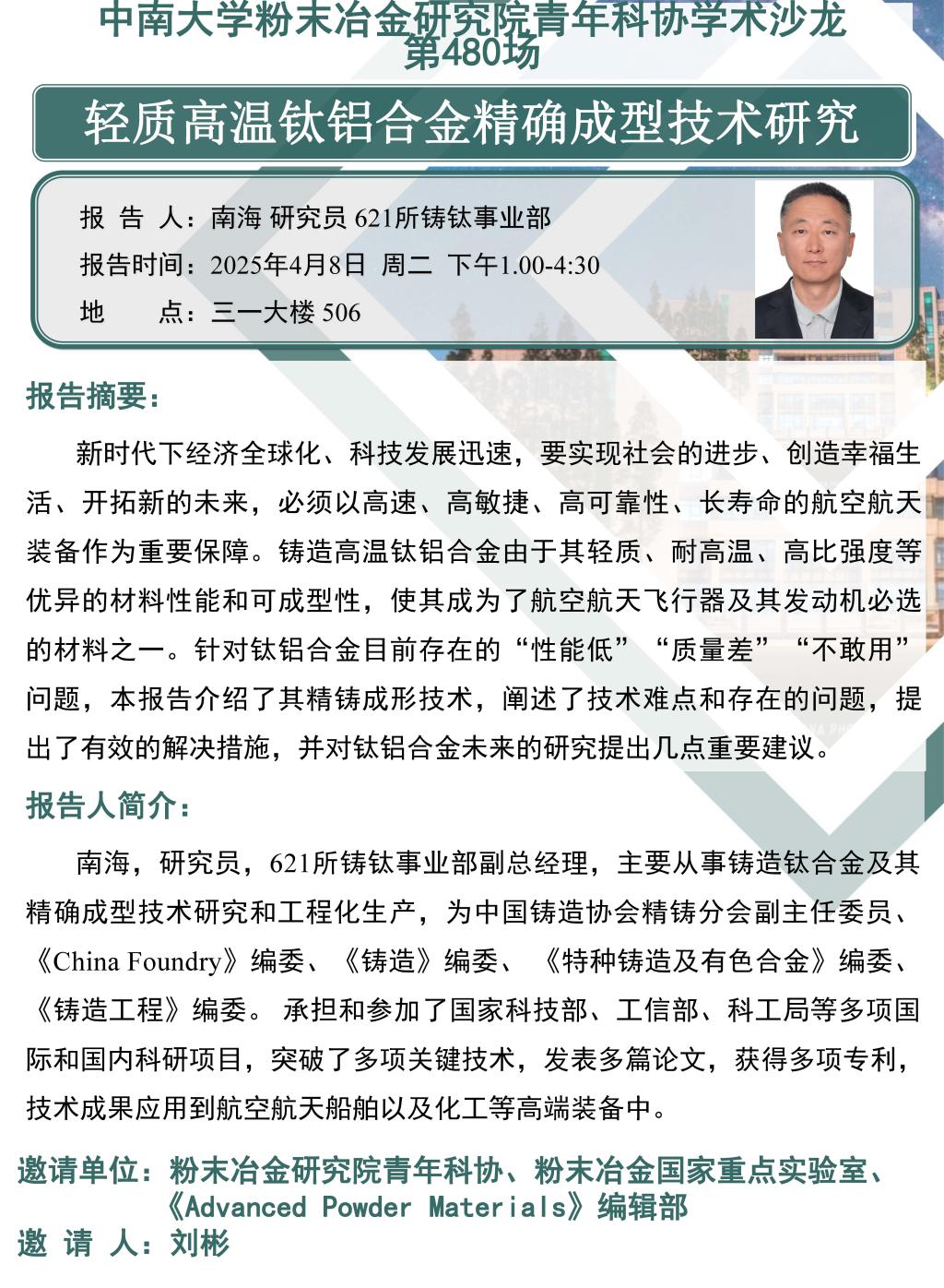 中南大学粉末冶金研究院青年科协学术沙龙 第480场