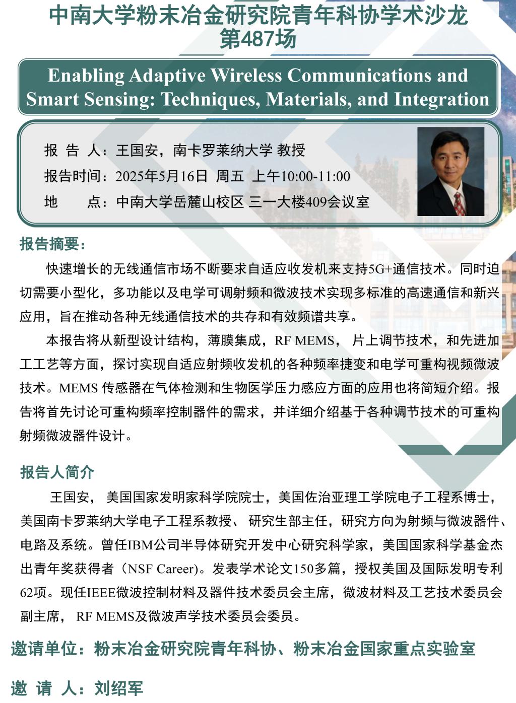 中南大学粉末冶金研究院青年科协学术沙龙 第487场
