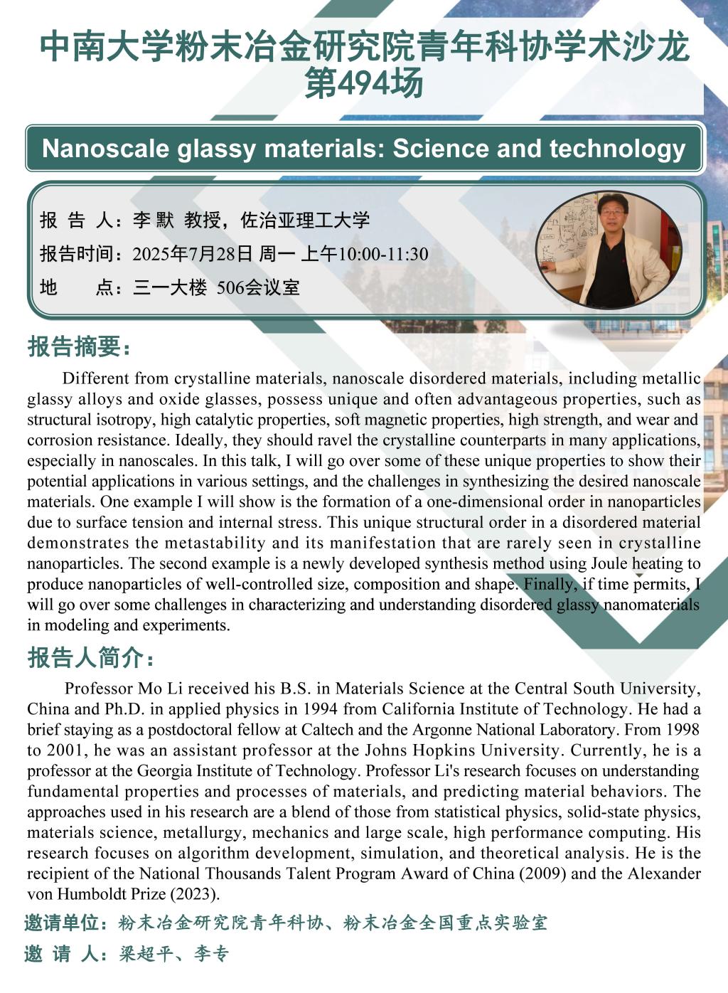 中南大学粉末冶金研究院青年科协学术沙龙 第494场