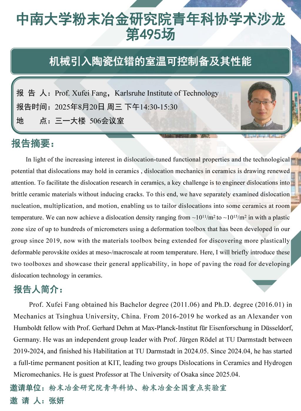 中南大学粉末冶金研究院青年科协学术沙龙 第495场