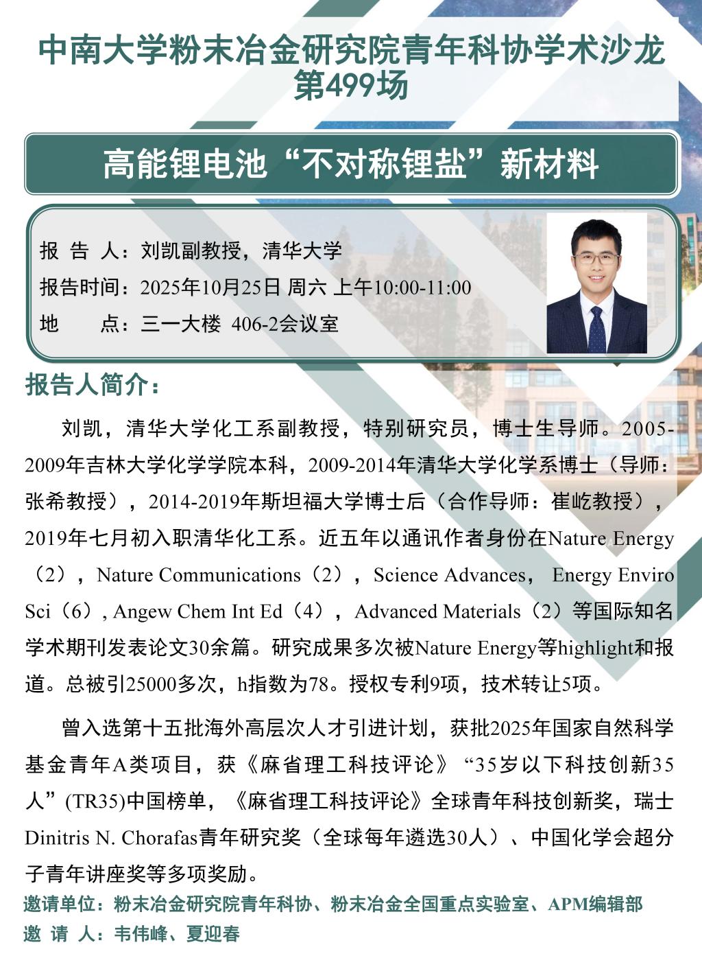 中南大学粉末冶金研究院青年科协学术沙龙 第500场