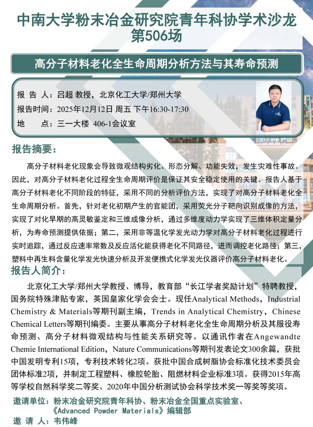 中南大学粉末冶金研究院青年科协学术沙龙 第506场